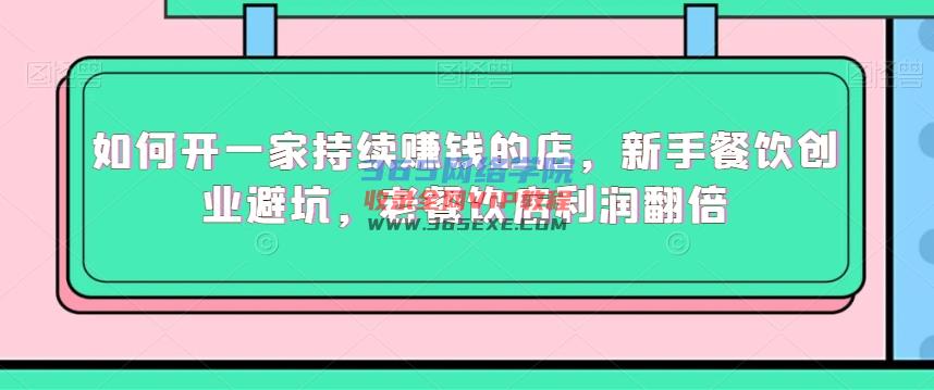 [管理讲座] 如何开一家持续赚钱的店,新手餐饮创业避坑,老餐饮店利润翻倍